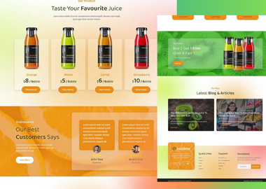 Quench your customers’ thirst with this vibrant and modern Elementor template, designed specifically for online juice stores and beverage brands. Perfect for showcasing fresh juices, smoothies, and healthy drinks, this template includes sections for featured products, customer testimonials, subscription plans, and special offers. The colorful and energetic design highlights the freshness and health benefits of your beverages, creating an engaging shopping experience. Fully responsive and optimized for SEO, this template is ideal for attracting health-conscious customers and growing your juice business online.